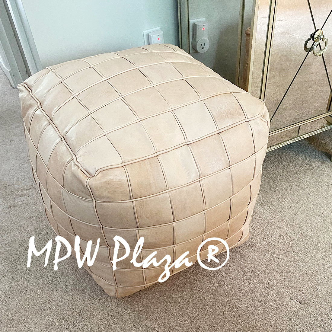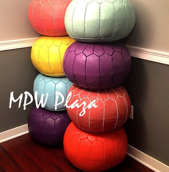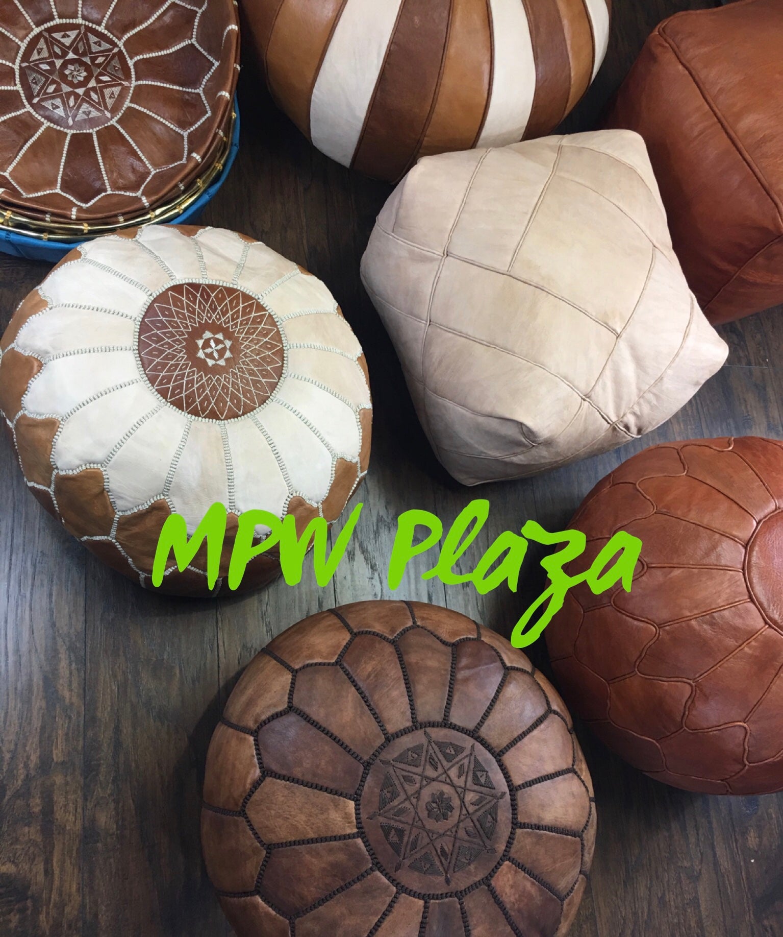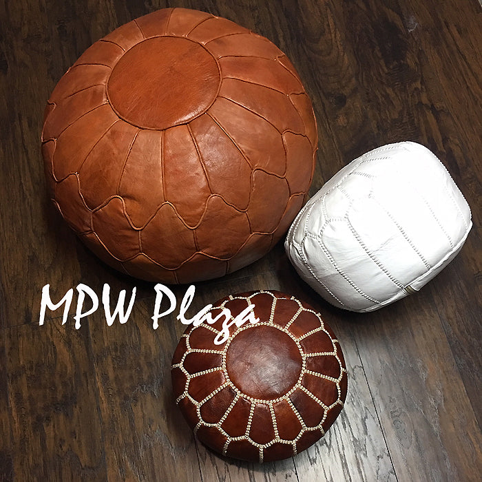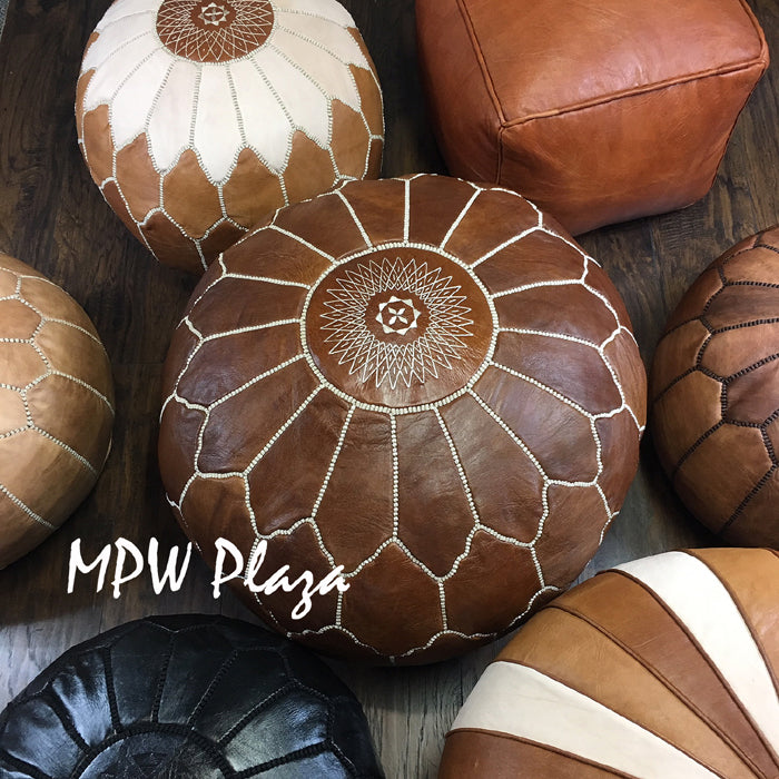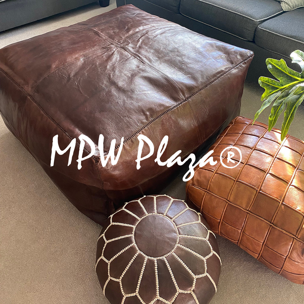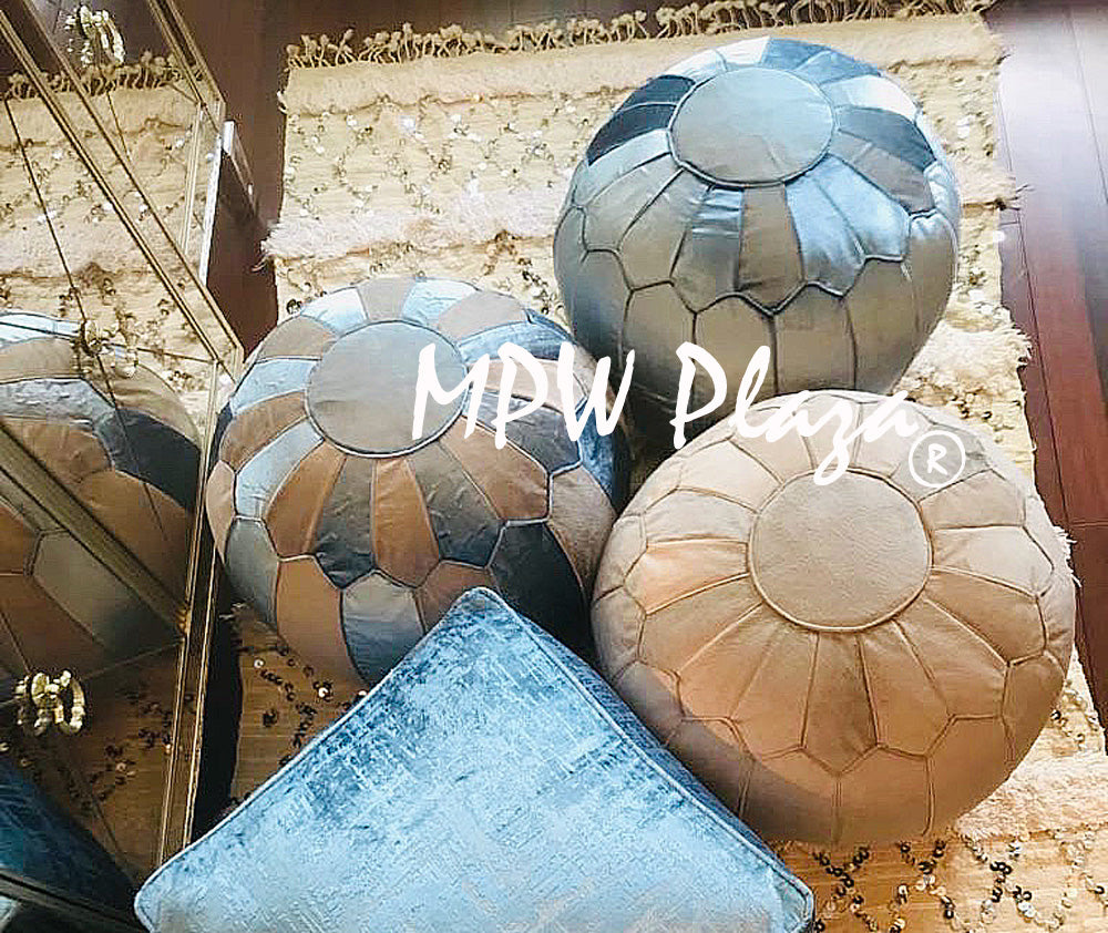 Boutique Grade, Premium Moroccan Leather Poufs. Crafted and designed by MPWplaza to enrich your space with sophistication and MPWplaza's iconic luxurious touch. Make a statement of true Luxury, be the talk of the town, with an exclusive, limited edition MPWplaza Premium Moroccan Pouf.